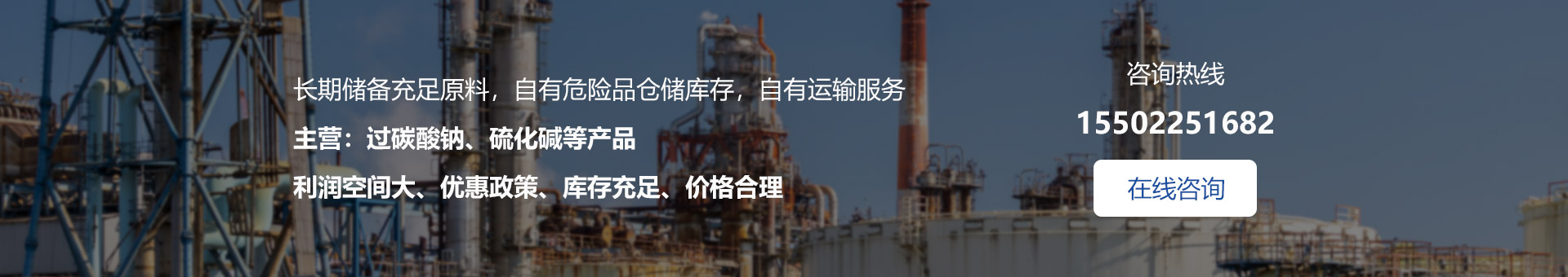 我公司自有危險(xiǎn)品儲(chǔ)存?zhèn)}庫,自有的運(yùn)輸隊(duì)伍和三位一體的運(yùn)營模式,使我公司在市場中有著廣闊的發(fā)展前景和拓展空間。我廠生產(chǎn)及代理產(chǎn)品主要有:五水偏硅酸鈉、聚丙烯酰胺、硫化鈉、活性炭、磷酸三鈉、純堿等......